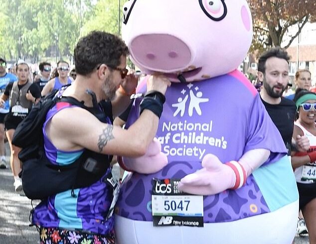 Peppa Pig’s dad is running the 26.2-mile course to raise awareness and funds for the National Deaf Children’s Society, after his son George’s recent hearing loss diagnosis.