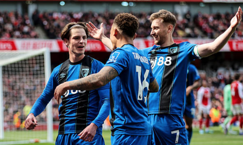 Neither team had a shot until the 17th minute, when Bournemouth took the lead following a slick move. Ryan Christie’s defence-splitting pass released Adrien Truffert, and after the left-back’s centre deflected off William Saliba, Junior Kroupi pounced to steer home.