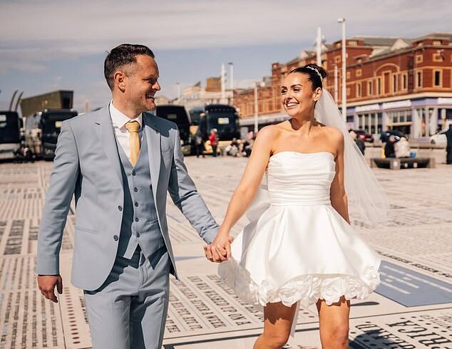 Newlyweds Kelsey and Matt looked more loved-up than ever after saying ‘I do’ as they posed for photos outside The Blackpool Tower