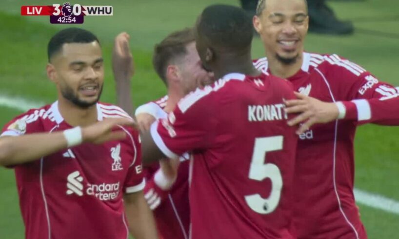 The scoring opened early through Hugo Ekitike. After an initial corner delivery was headed clear by the Hammers’ defense, Ryan Gravenberch showed great composure to play the ball for the Frenchman, who made no mistake in slotting home to settle the home crowd.