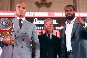 “Like I said, if he’s ready to fight, tell him to stop going on social media and making up lies, saying that I said, ‘Oh, I won’t fight that weight class’, I said I will. I said, with a rehydration clause, because he did it to Eubank.